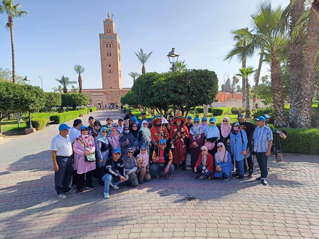 Selepas sarapan. Keluar hotel. Lawati Marrakesh: Istana Bahia, farmasi rempah di Madinah Lama, Masjid Kutubiyya. Makan tengah hari di Jamaa Elfnaa. Masa lapang untuk membeli-belah dan lawati Jamaa Elfnaa.